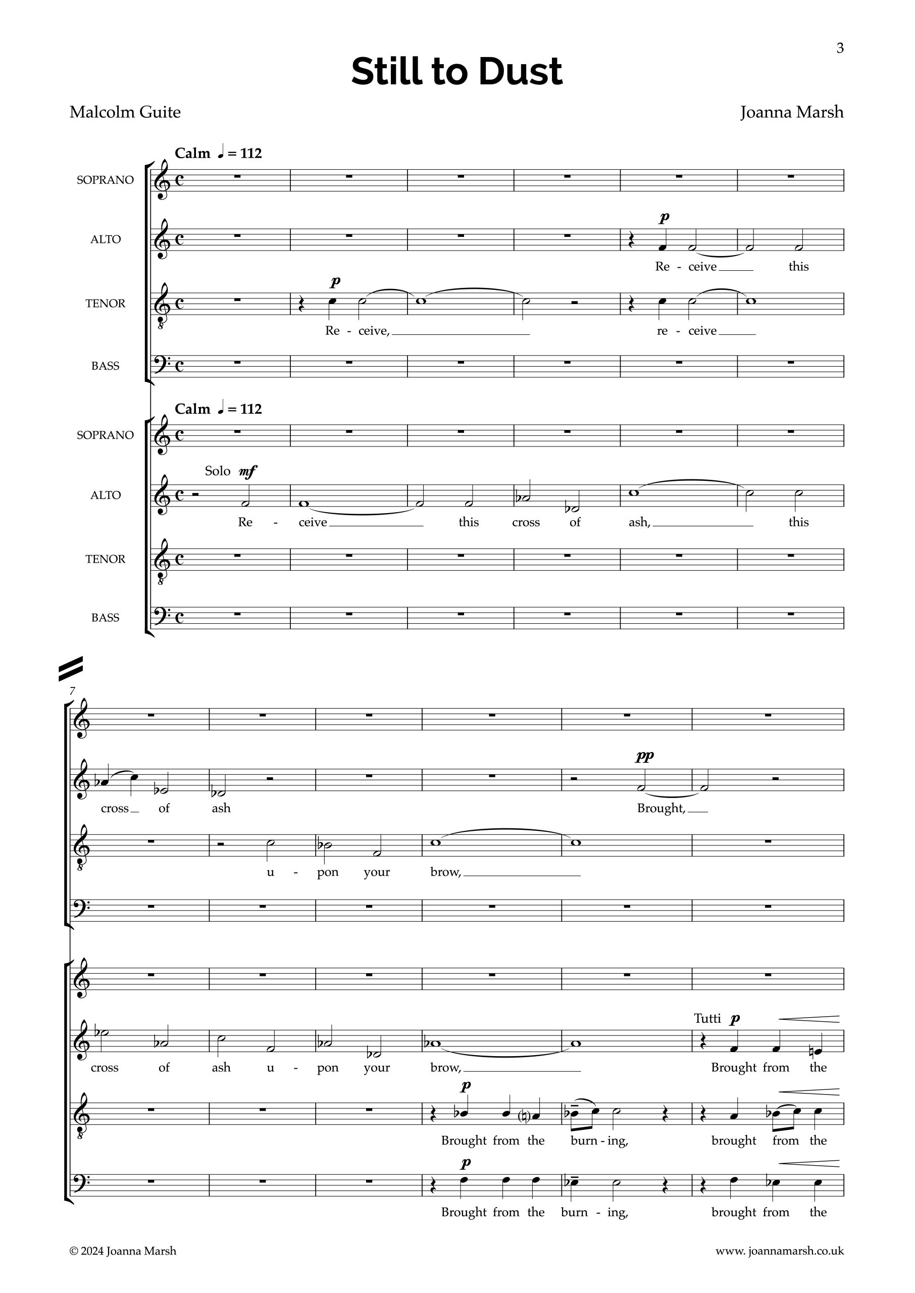 Still to Dust was commissioned by the Master and Fellows of St John’s College, Cambridge. It was first performed on Saturday 9 March 2024 by The Choir of St John’s College, Cambridge, directed by Christopher Gray.