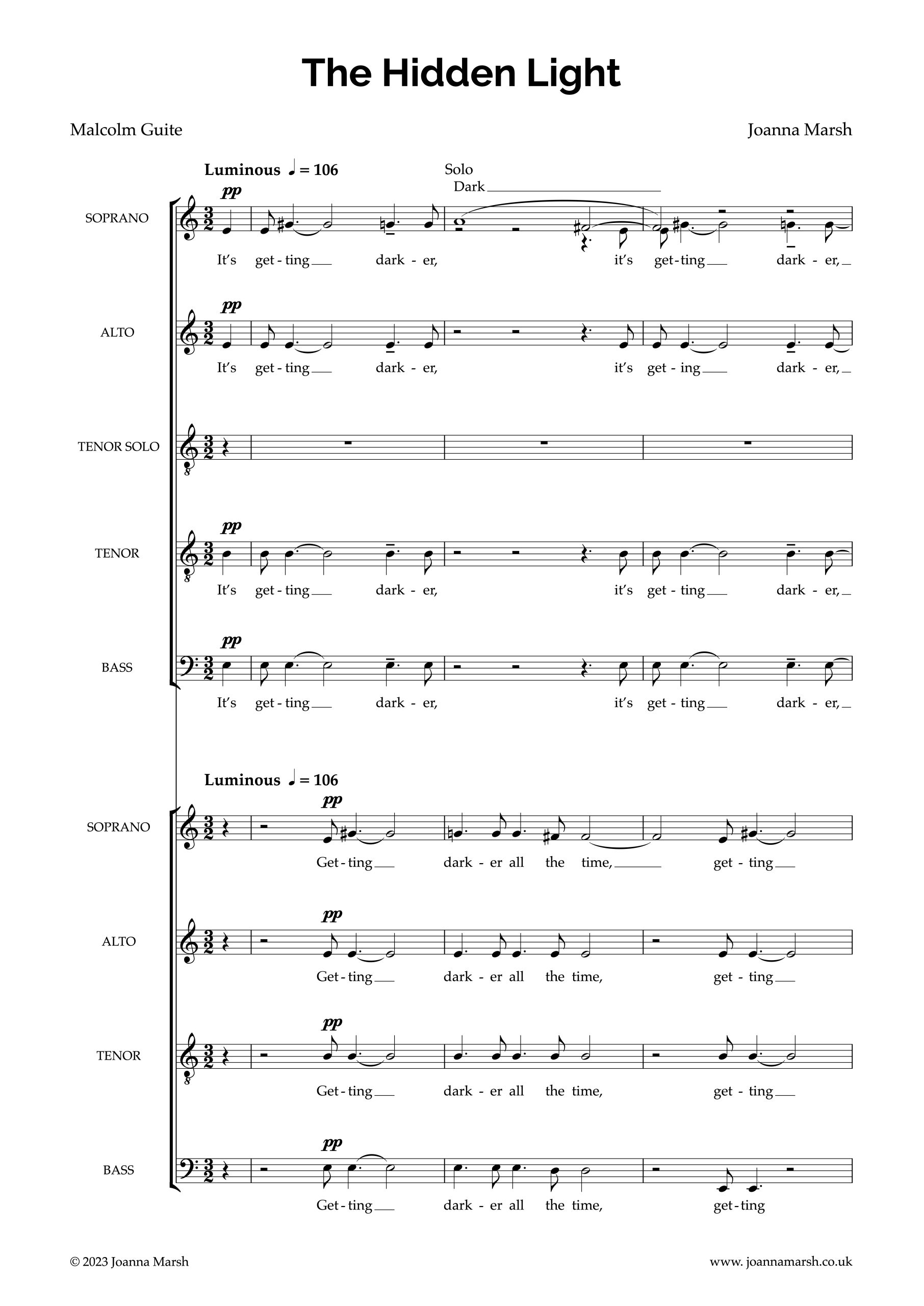 The Hidden Light was commissioned by the Master and Fellows of St John’s College, Cambridge. It was first performed on Saturday 25 November 2023 by The Choir of St John’s College, Cambridge, directed by Christopher Gray.